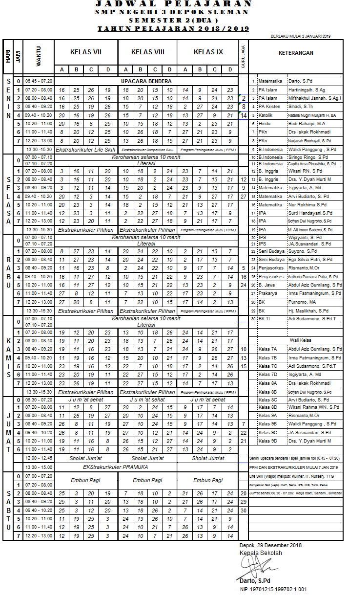 1. Bapak Sasmoko wali kelas 7c dan pengampu IPSĀ kelas 7 dan 8, telah memasuki masa pensiun, sehingga tugas wali kelas digantikan kepada pak Adi Sudarmono, S.Pd.T dan Pengampu IPS dilaksanakan oleh Ibu Wijayanti, S.Pd