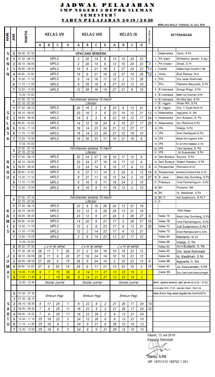 JADWAL PELAJARAN 15-20 JULI 2019 DARTO SAHAJA, S.Pd, July 13, 2019July 13, 2019 Dengan semangat baru kita memasuki tahun pelajaran baru 2019/2020, inilah jadwalnya… INFORMASI KESISWAAN INFORMASI SEKOLAH